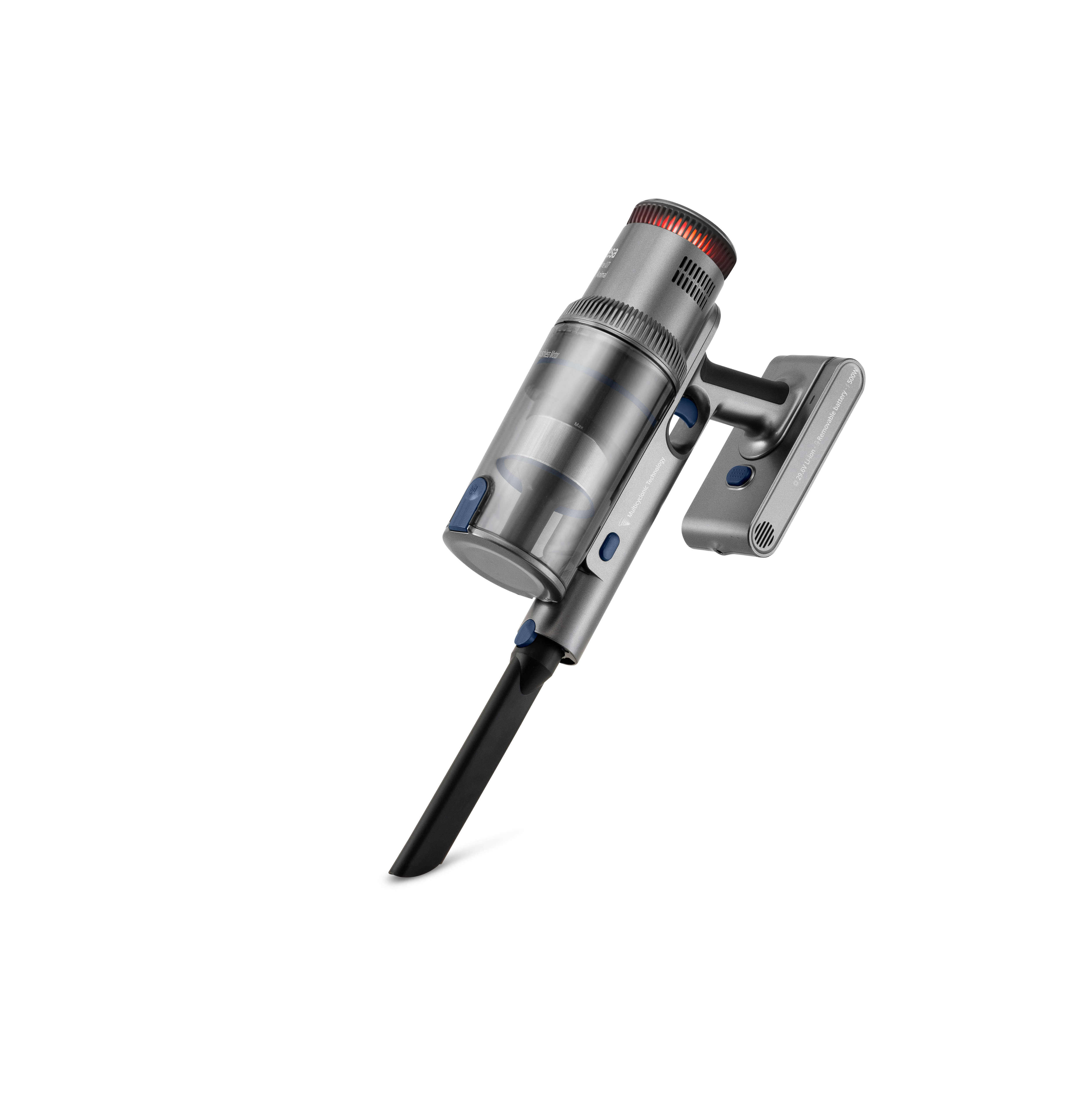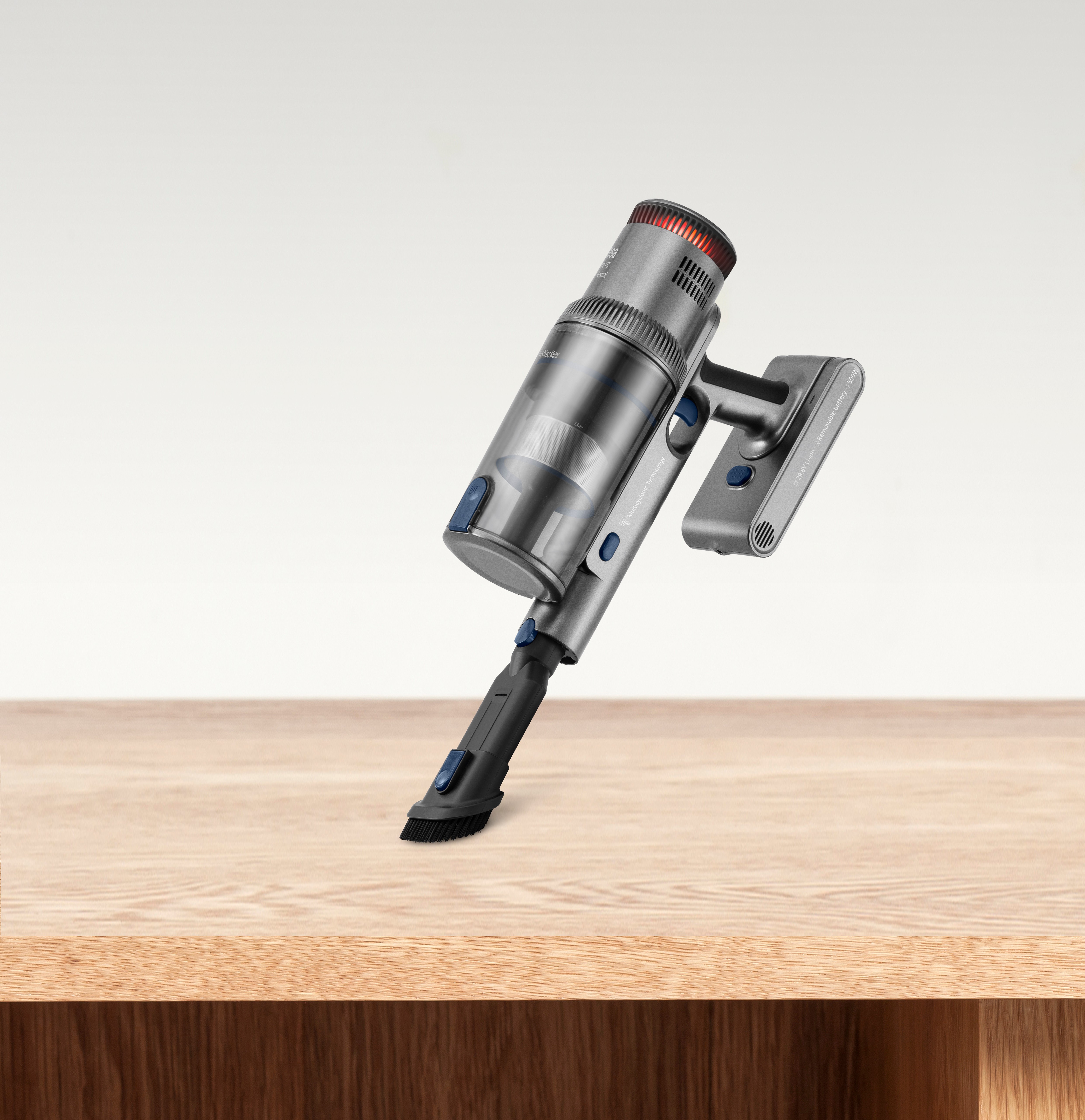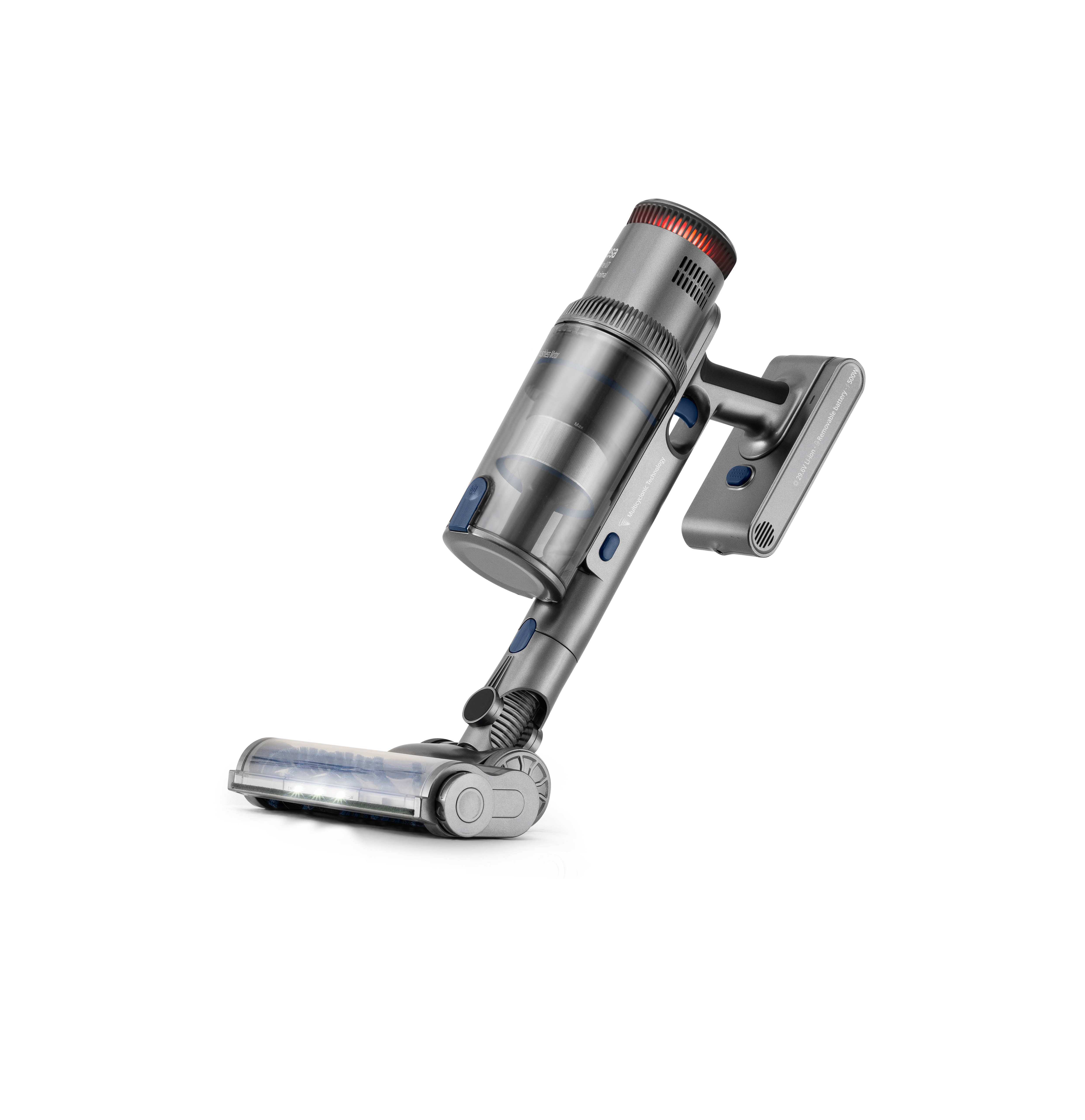 Aspirador escoba sin cable con motor Digital Brushless de 500W de potencia máx., brazo articulado, 26 KPa, pantalla digital táctil, cepillo motorizado multisuerficie con luz Power Led, 80 min de autonomía, 29.6V. Accesorio especial para mascotas