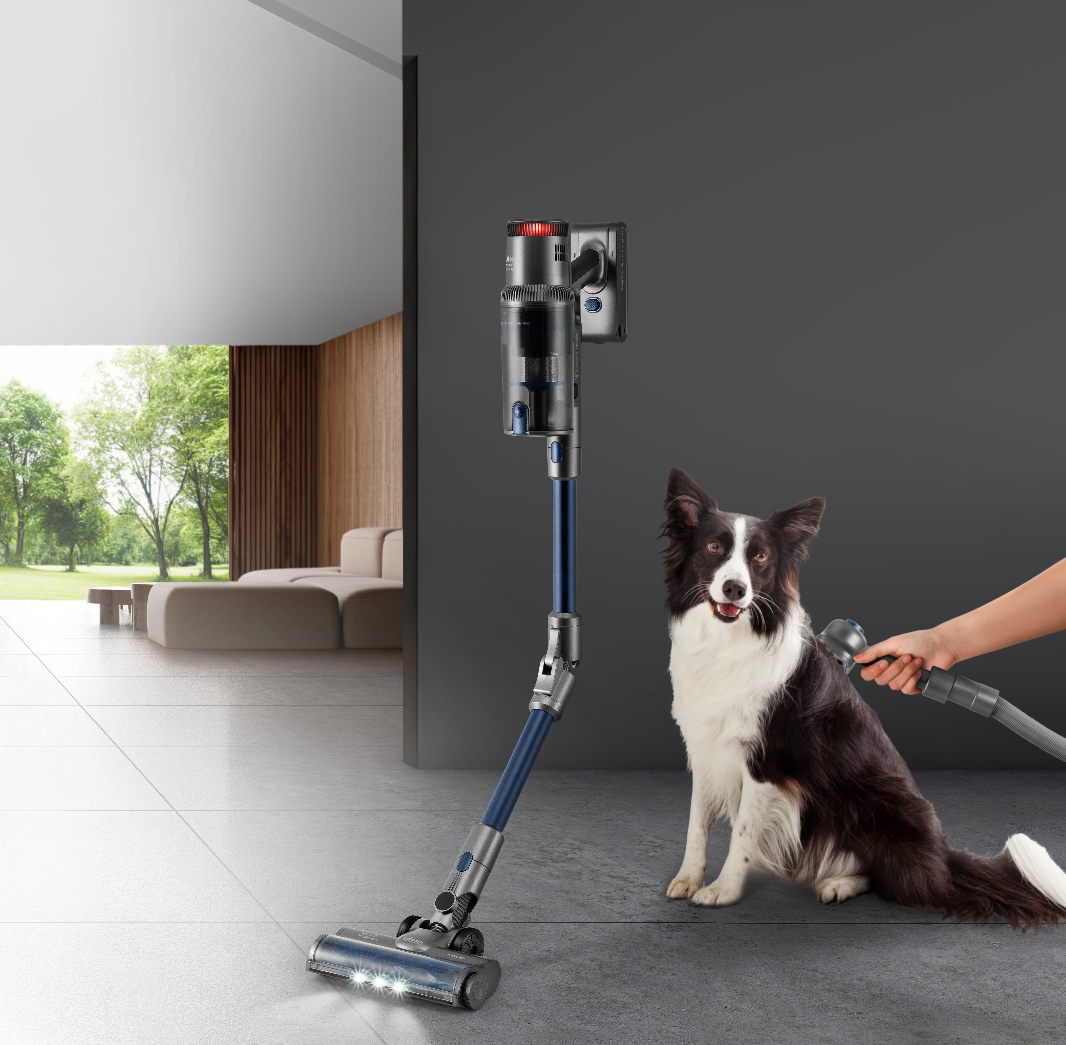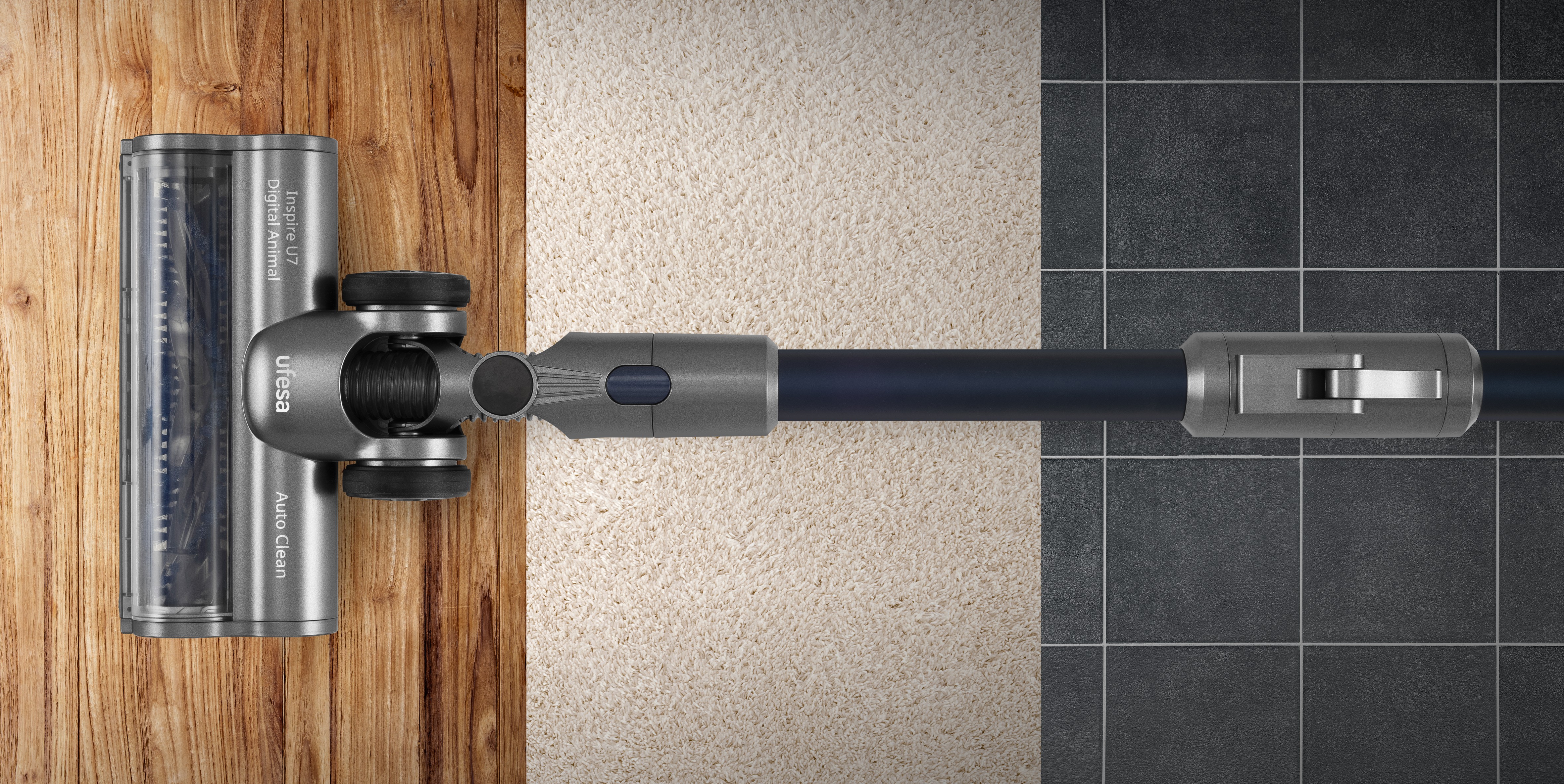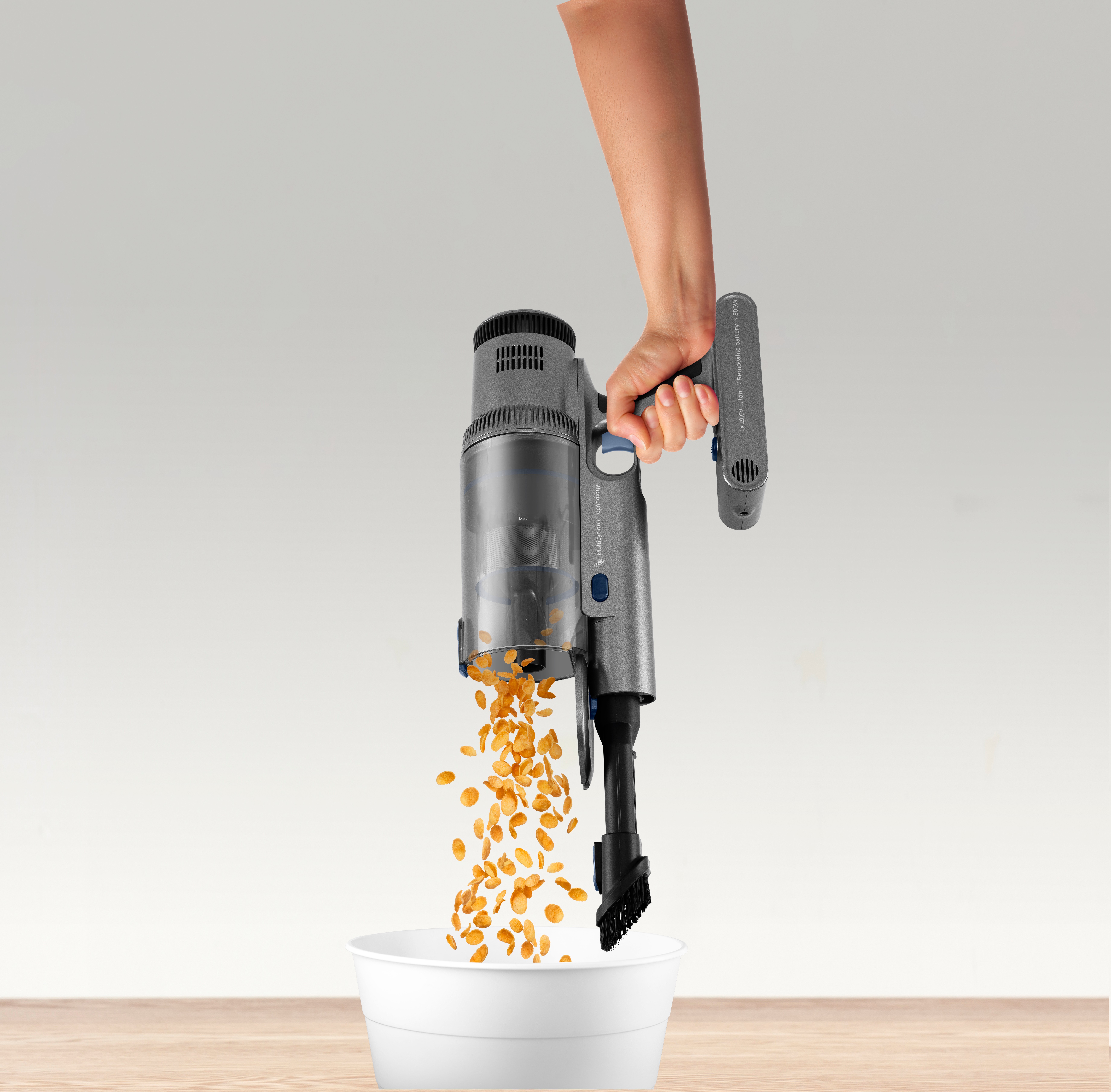 Aspirador escoba sin cable con motor Digital Brushless de 500W de potencia máx., brazo articulado, 26 KPa, pantalla digital táctil, cepillo motorizado multisuerficie con luz Power Led, 80 min de autonomía, 29.6V. Accesorio especial para mascotas