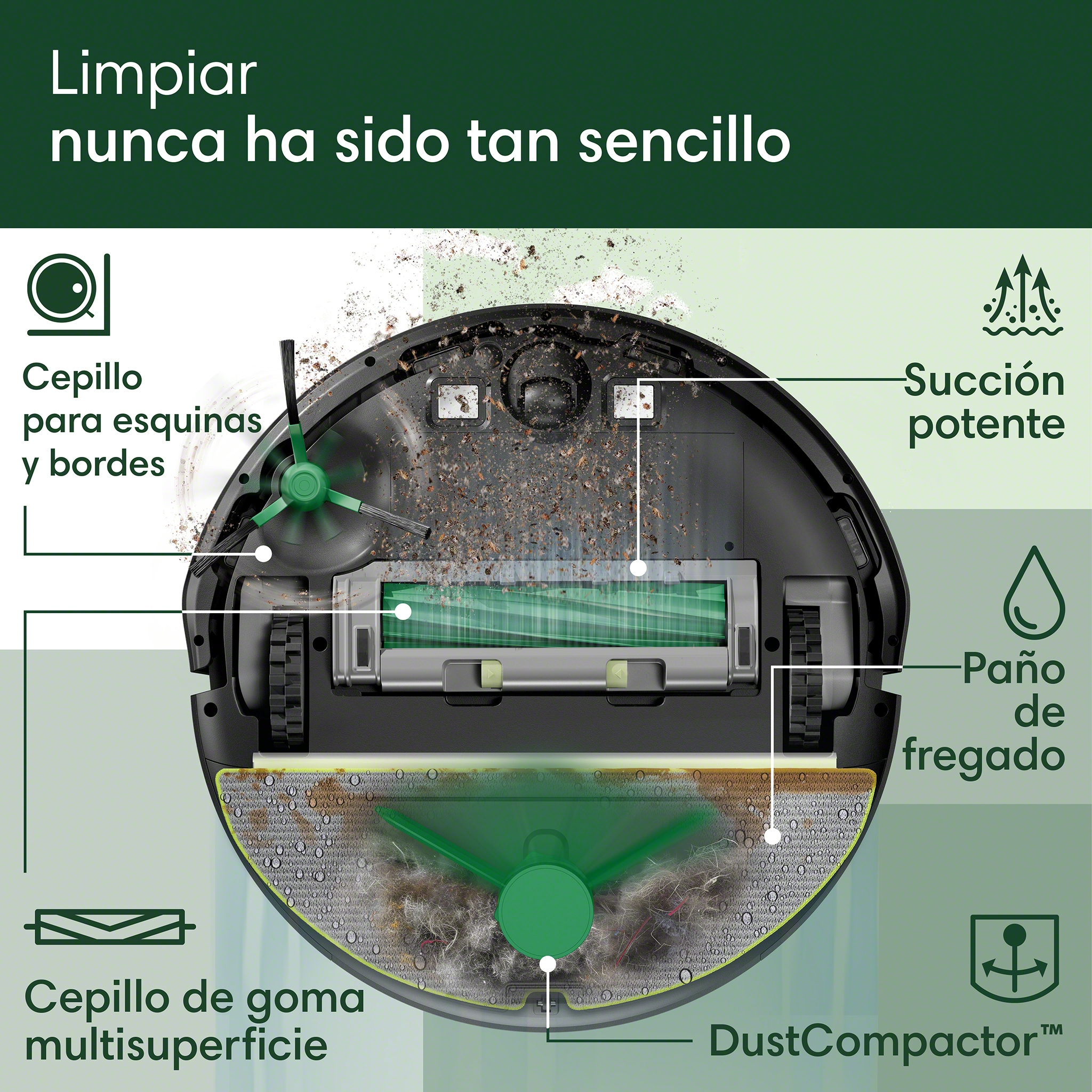 iRobot Roomba 205 Combo, Sin bolsa, Negro, Alrededor, EPA, Cepillo de rodillo y cepillo lateral, Ión de litio