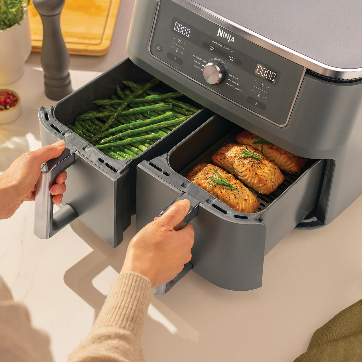 Ninja DZ400EU, Freidora de aire caliente, 9,5 L, 4 kg, 240 °C, Doble, Gris