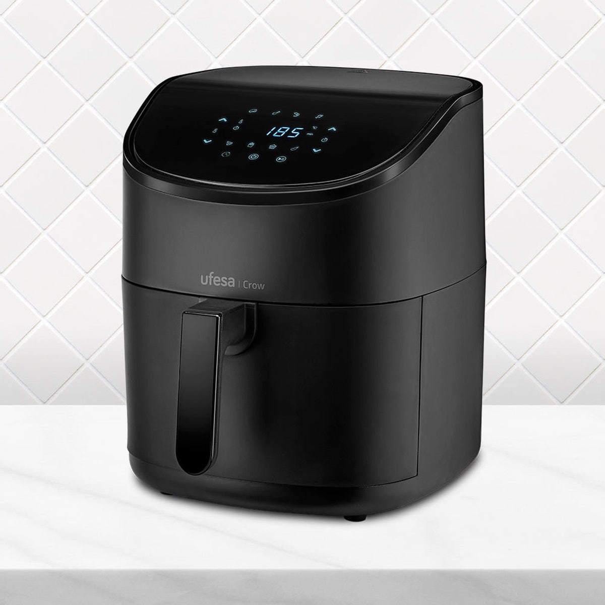 Freidora de aire caliente con Tecnología 360º de circulación de aire a alta velocidad, 6 litros de capacidad, 8 programas preestablecidos, temporizador, 1.700W, negra