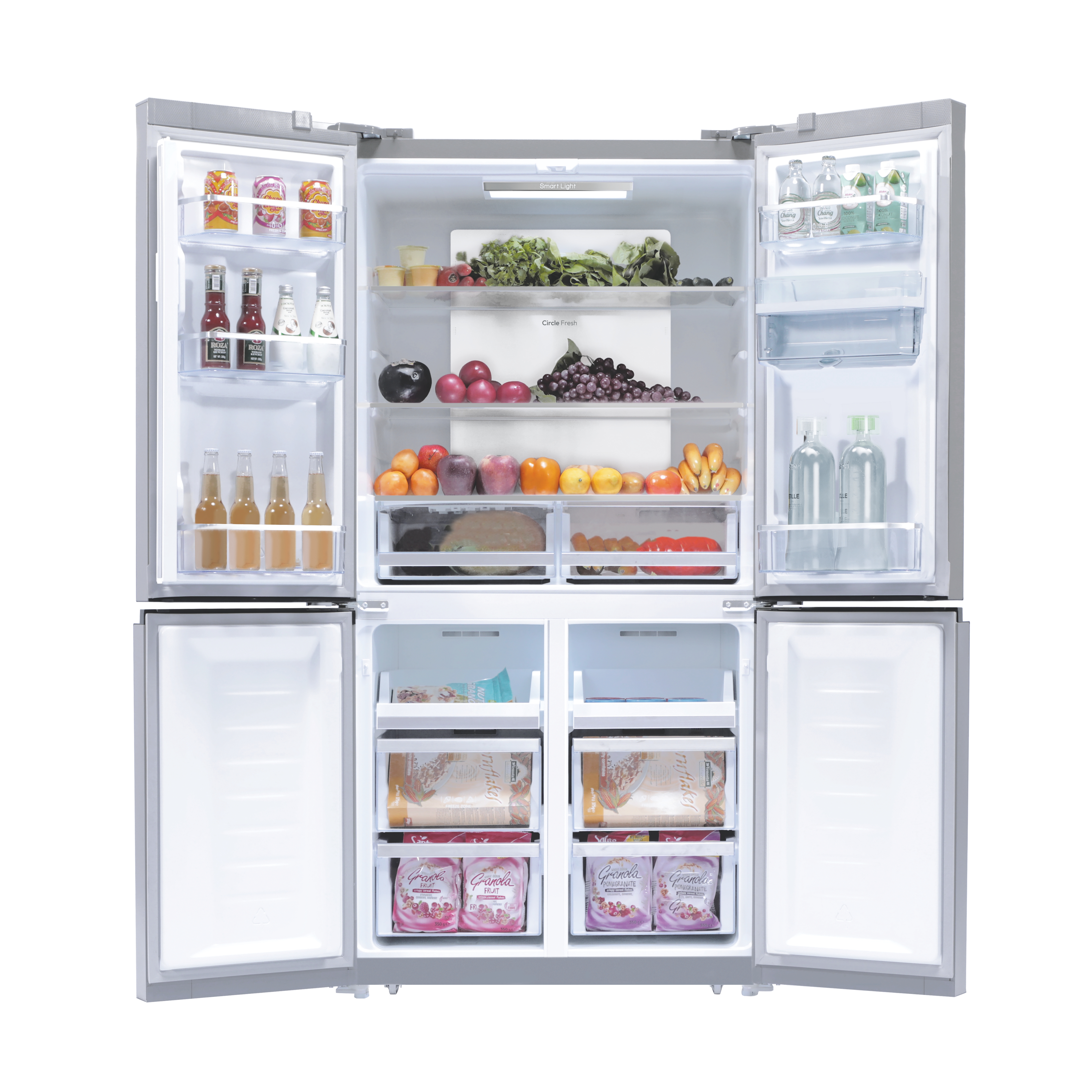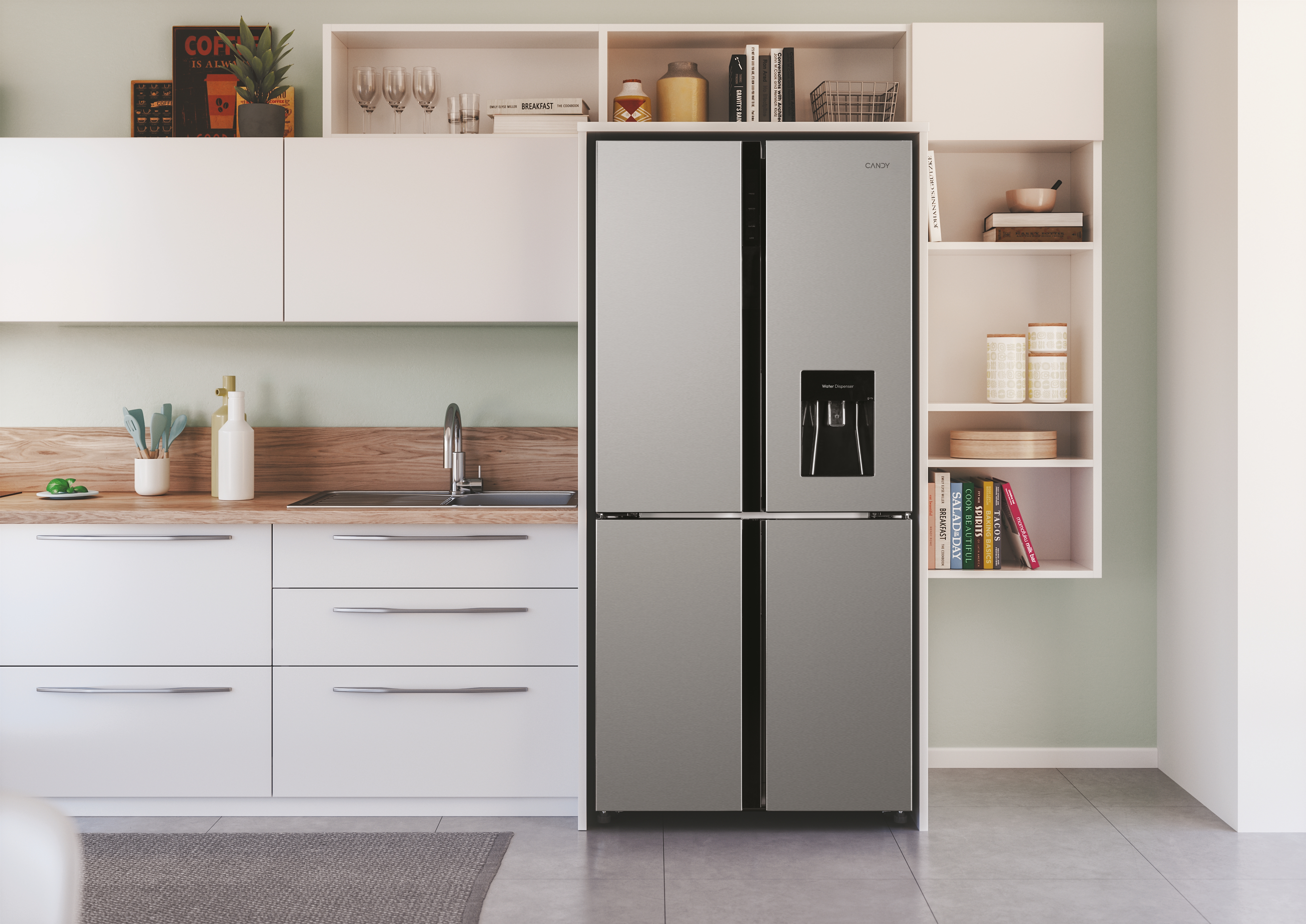 Candy CQS5T918EWX1. Tipo de instalación: Independiente, Diseño de producto: Puerta francesa, Color del producto: Acero inoxidable. Capacidad neta total: 563 L, Clase climática: SN-T, Clase de emisión de ruido: C. Frigorífico, capacidad neta: 359 L, Tipo de lámpara: LED. Congelador, capacidad neta: 204 L, Posición congelada: último lugar, Capacidad de congelación: 12 kg/24h. Aplicaciones de control compatibles: hOn