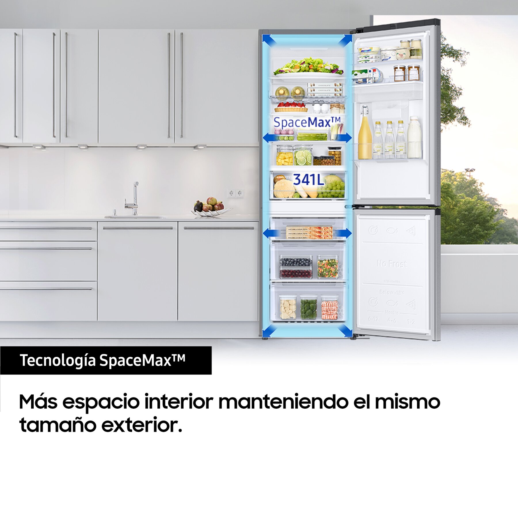 Frigorífico Combi 1,85m 344L Inox Clasificación Energética D y Smart AI - RB34C632DSA/EF. Con dispensador sin toma de agua.