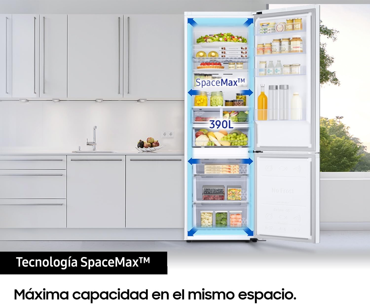Frigorífico Combi 2m 390L Blanco con Smart AI RB38C605CWW. Tecnología SpaceMax™. Power Cool - Power Freeze. Compresor Digital Inverter.