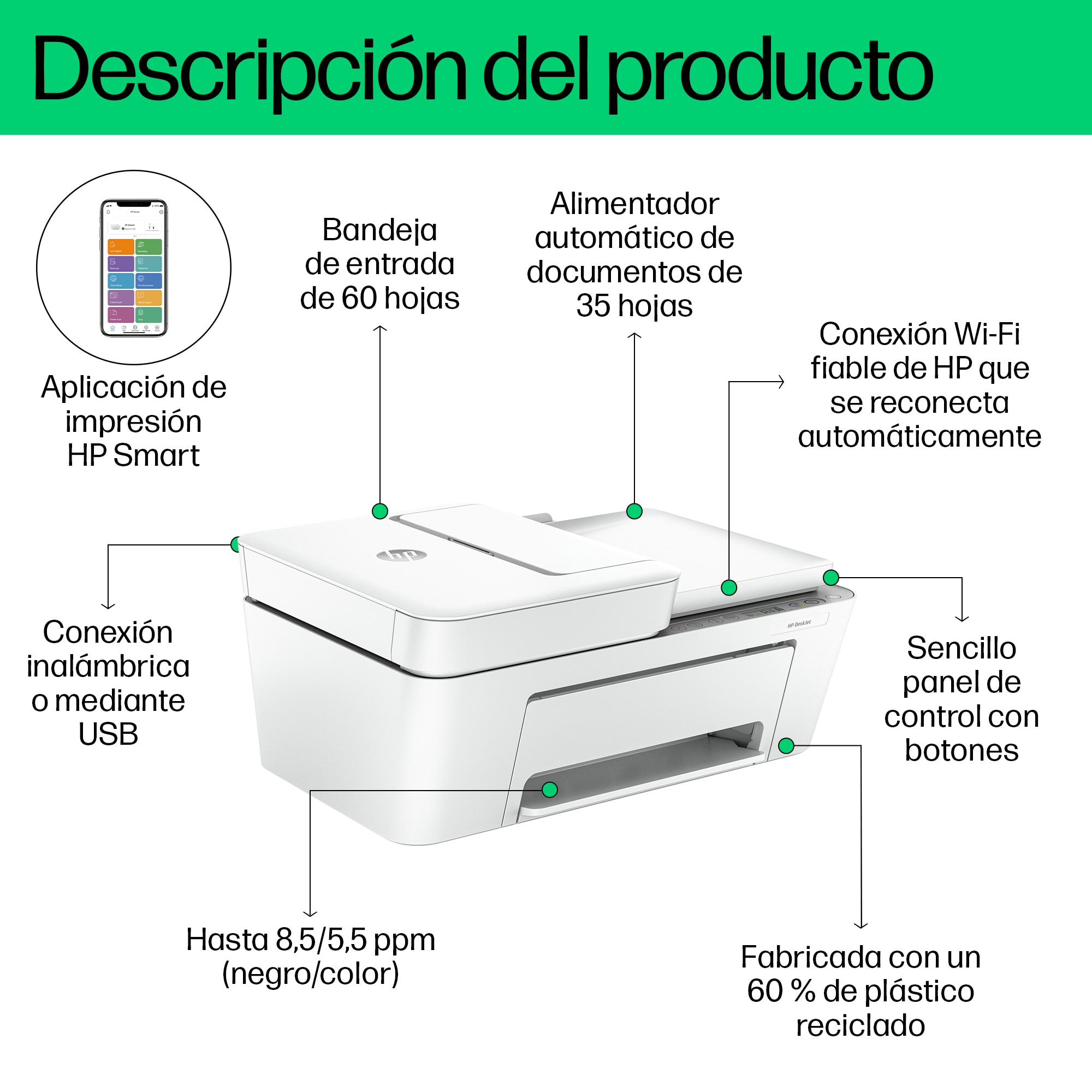 HP Impresora multifunción HP DeskJet 4220e, Color, Impresora para Hogar, Impresión, copia, escáner, HP+; Compatible con el servicio HP Instant Ink; Escanear a PDF