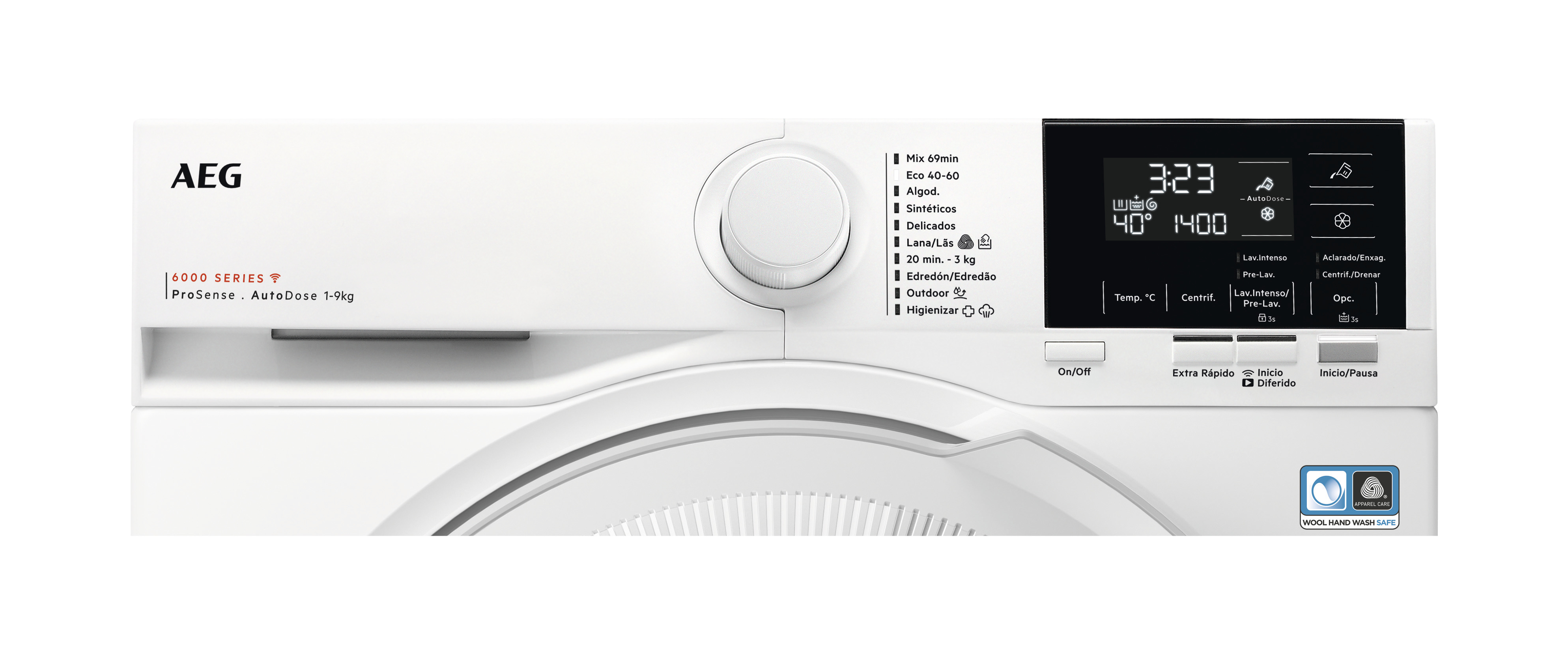 AEG Series 6000 LFR6194O2Q. Tipo de carga: Carga frontal. Capacidad nominal: 9 kg, Clase de secado por giro: B, Nivel de ruido (spin): 75 dB, Máxima velocidad de centrifugado: 1400 RPM. Color del producto: Blanco. Ancho: 596 mm, Profundidad: 631 mm, Altura: 847 mm. Clase de eficiencia de energía: A