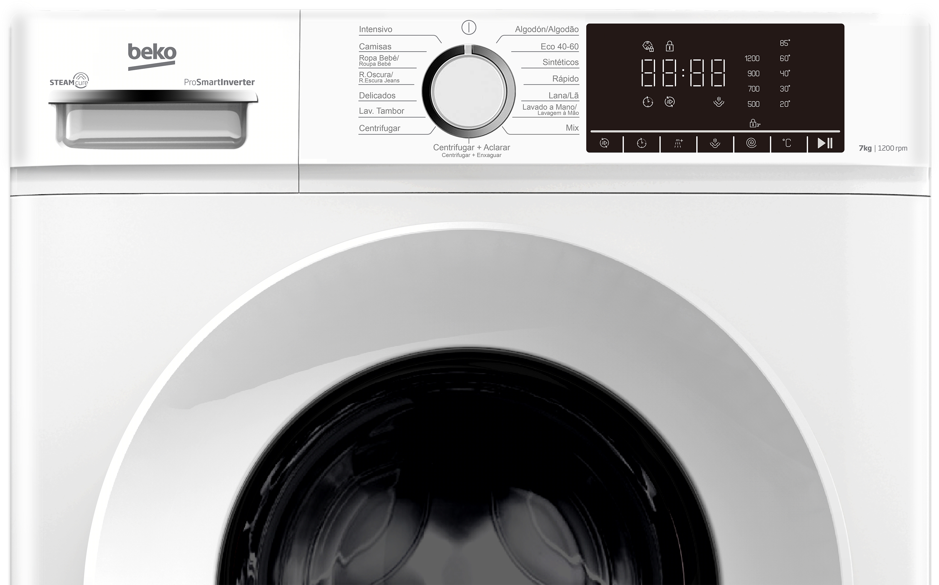 Beko b100 B1XW752WSPT, Carga frontal, 7 kg, B, 76 dB, 1200 RPM, B