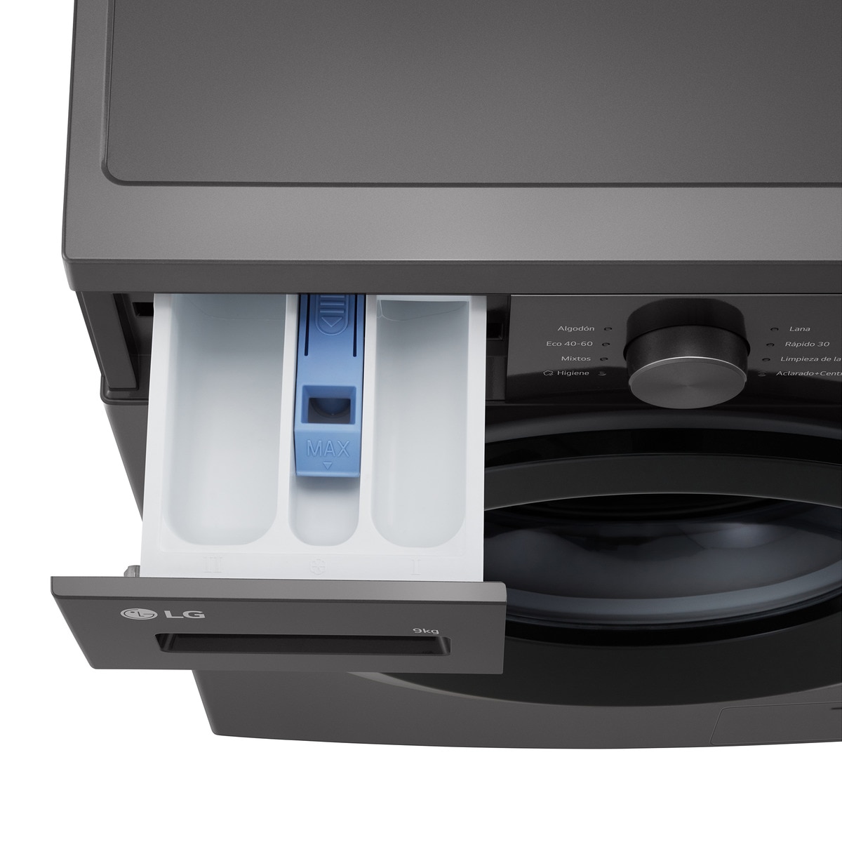 Desempeño Capacidad de carga (kilos)9 kg Máxima velocidad de centrifugado1400 rpm Número de programas de lavado8 Color del productoNegro grafito Tipo de MotorMotor inverter Contenido del embalaje Tapa protectoraSí, tapa extra Detalles técnicos Color de la puertaNegro Características especialesEficacia de centrifugado: B Peso y dimensiones Dimensiones (Ancho x Profundidad x Altura)600 x 600 x 850 mm Peso61 kg Control de energía Consumo anual de energía, lavado49 kWh/ 100 ciclos Clase de eficiencia de energíaA Exhibición Tipo de productoLavadoras
