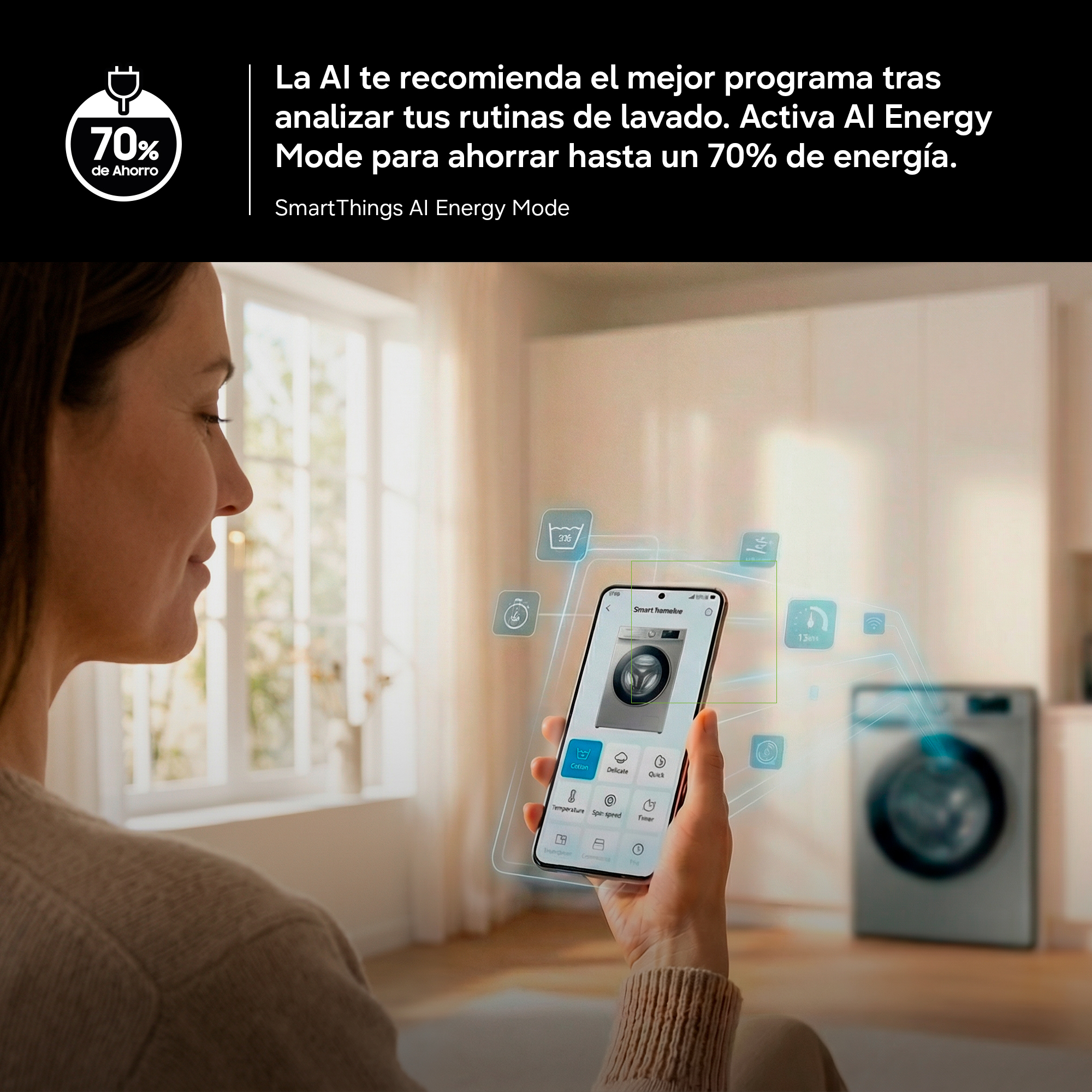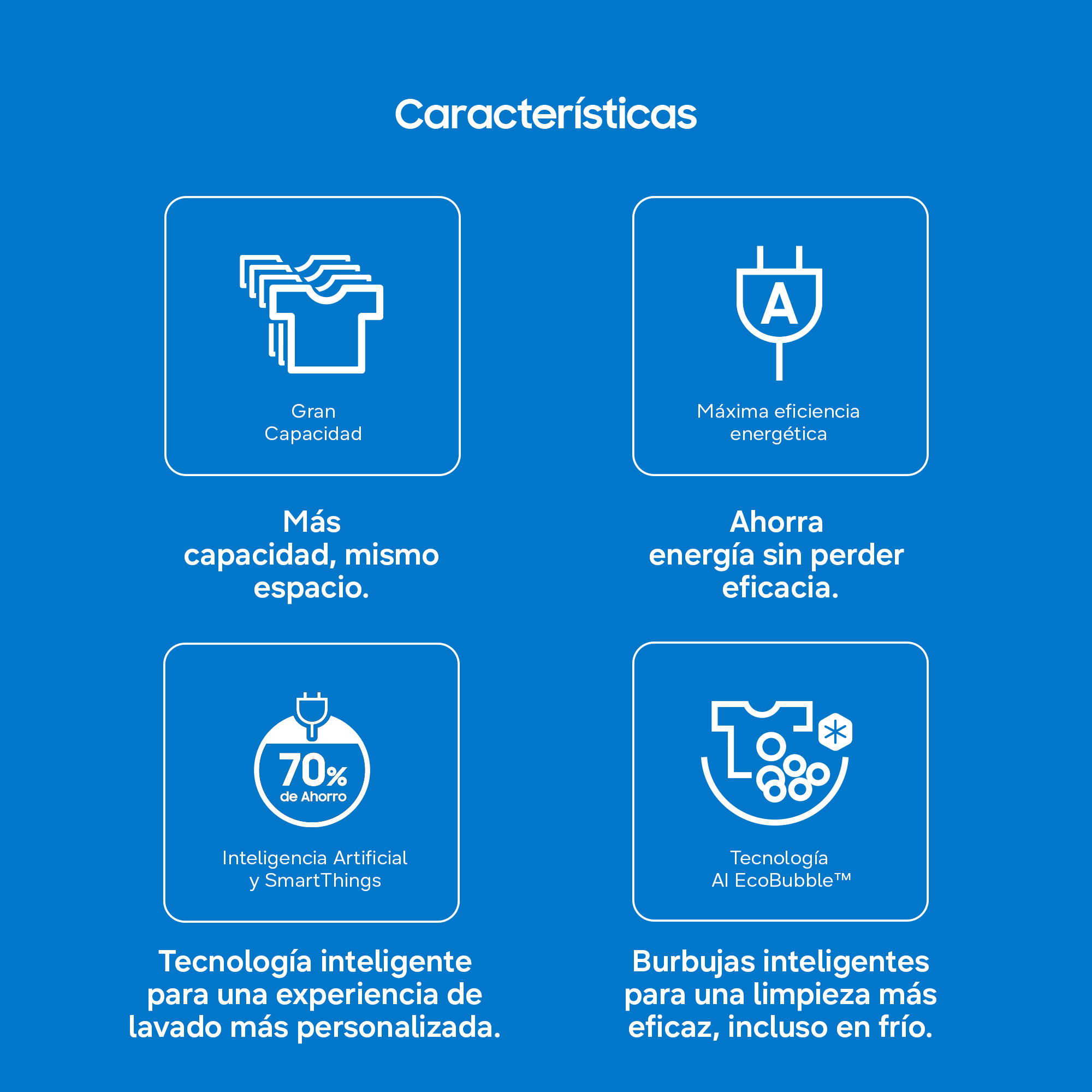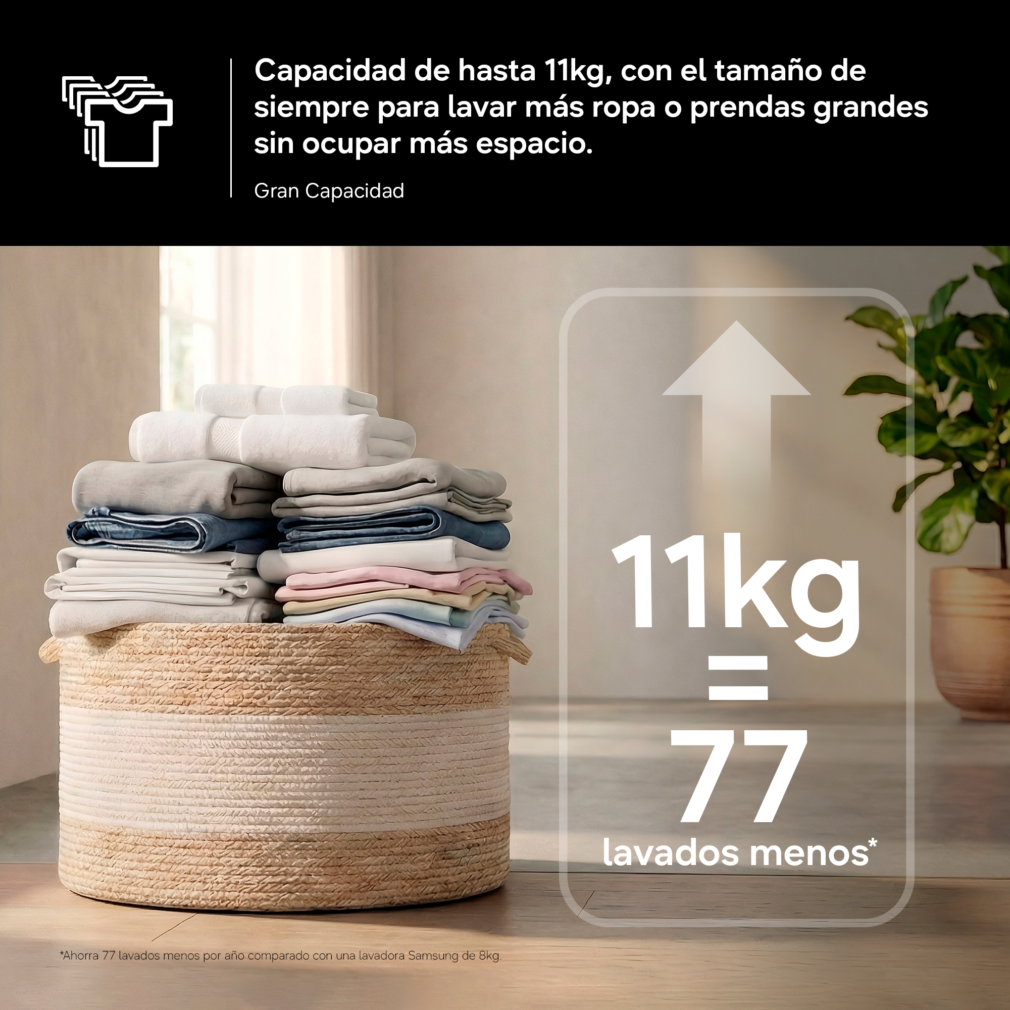 Samsung Lavadora 11kg AI Ecobubble Blanca, Clasificación Energética A WW11DG5B25AEEC, Carga frontal, 11 kg, B, 72 dB, 1400 RPM, A