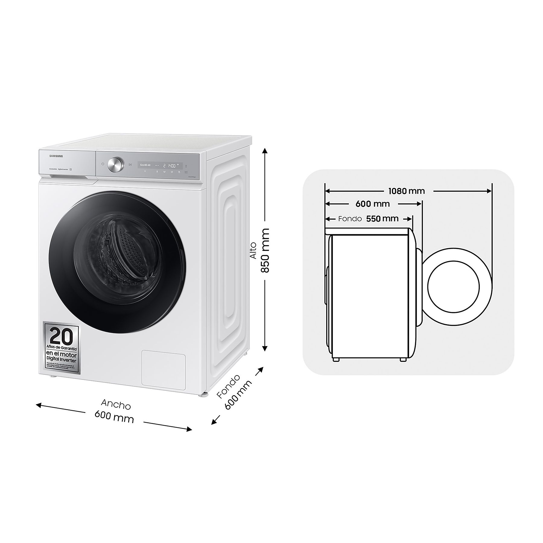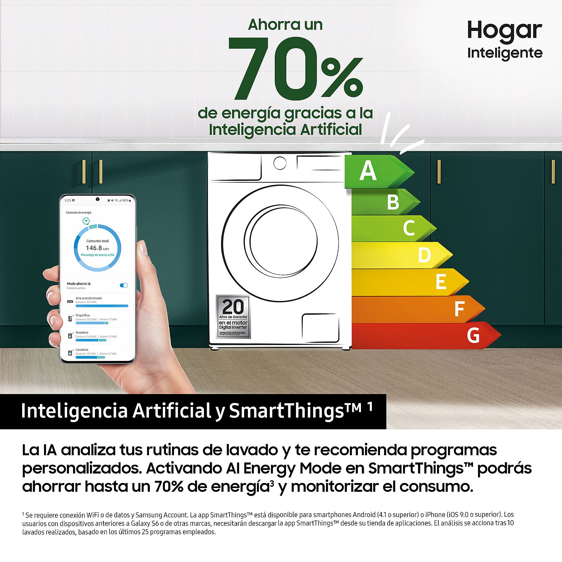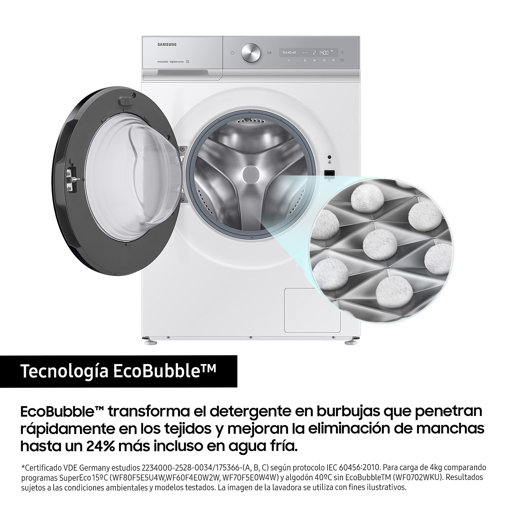 Samsung Lavadora 9kg Blanca AI Ecobubble™, Clasificación Energética A WW90DB8U95GHU3