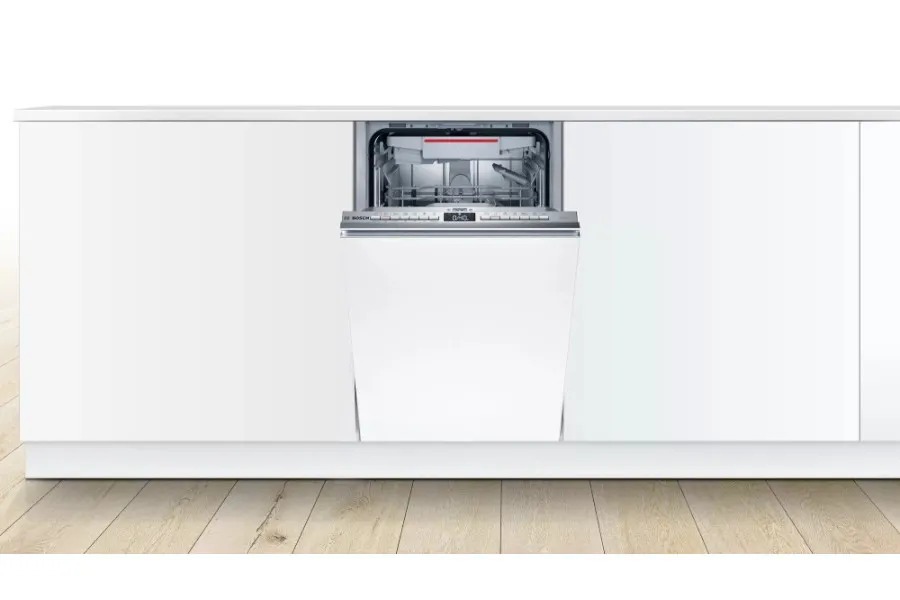 Bosch Serie 4 SPV4EMX25E. Tipo de instalación: Completamente integrado, Talla del producto: Estrecho (45 cm), Panel de control: Acero inoxidable. Número de cubiertos: 10 cubiertos, Clase de emisión de ruido: B, Nivel de ruido: 44 dB. Ajuste de patas: 6 cm, Aplicaciones de control compatibles: Bosch Home Connect. Clase de eficiencia de energía: C, Consumo de agua por ciclo de lavado: 8,9 L, Consumo de energía por 100 ciclos: 59 kWh. Ancho: 448 mm, Profundidad: 550 mm, Altura: 815 mm