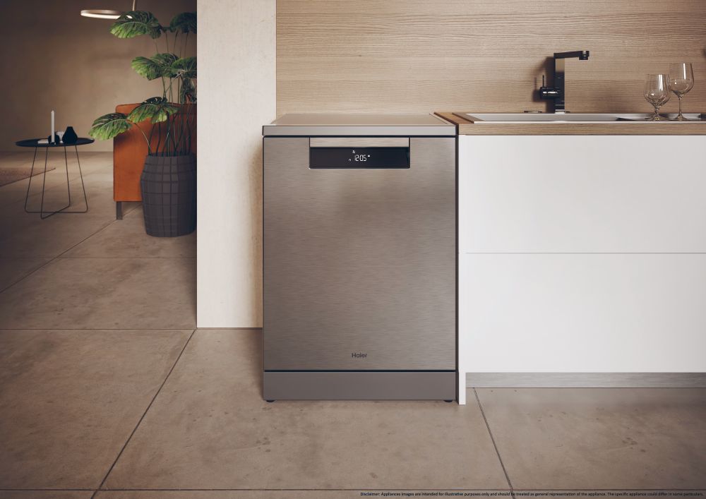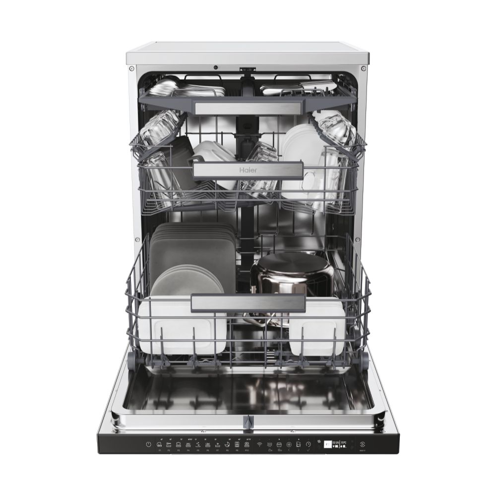 Haier XF 5C4M1X. Tipo de instalación: Independiente, Tipo de compartimiento para vajilla: Cajón. Número de cubiertos: 15 cubiertos, Clase de emisión de ruido: C, Nivel de ruido: 44 dB. Aplicaciones de control compatibles: hOn. Clase de eficiencia de energía: C, Consumo de agua por ciclo de lavado: 9,5 L, Consumo de energía por 100 ciclos: 75 kWh. Ancho: 597 mm, Profundidad: 598 mm, Altura: 850 mm