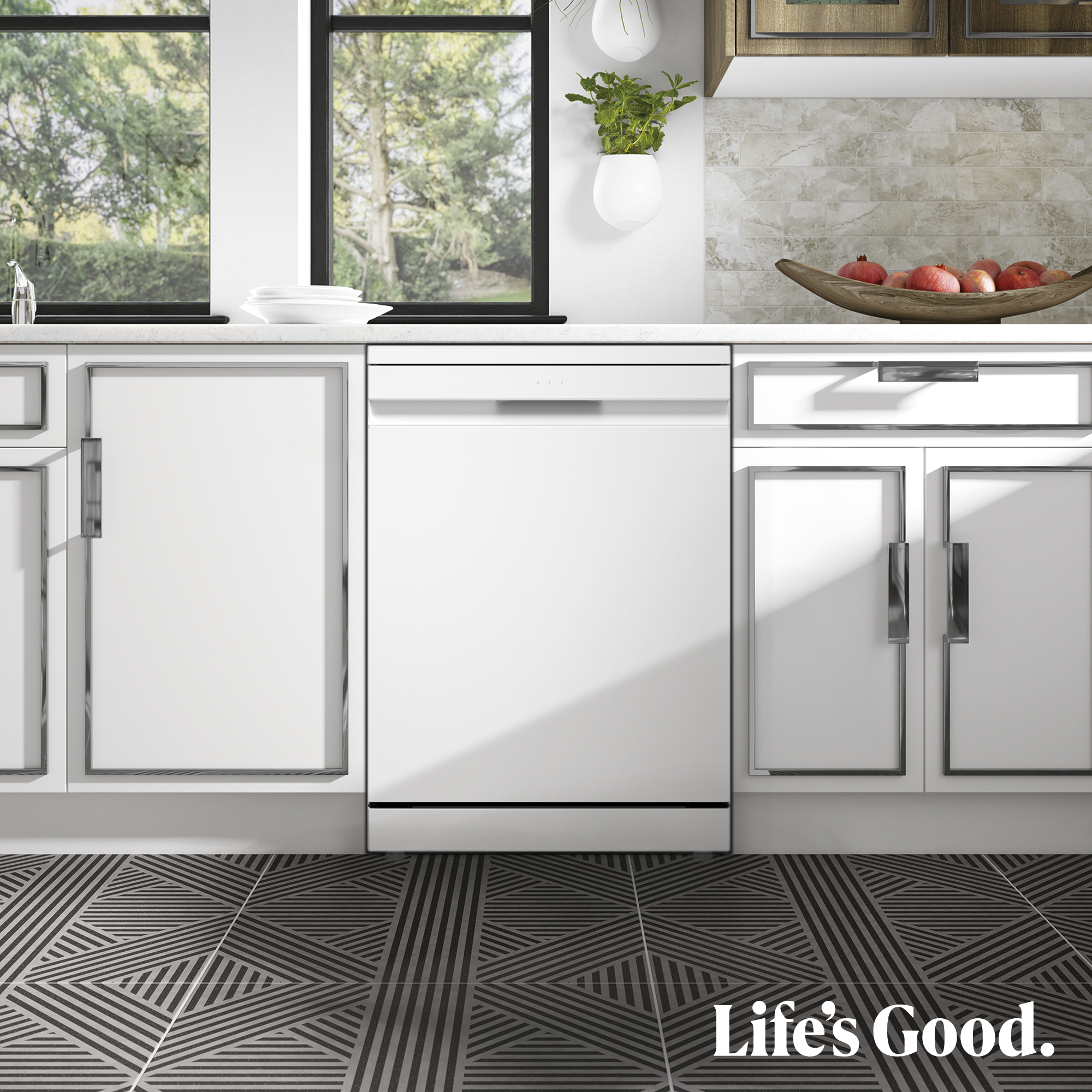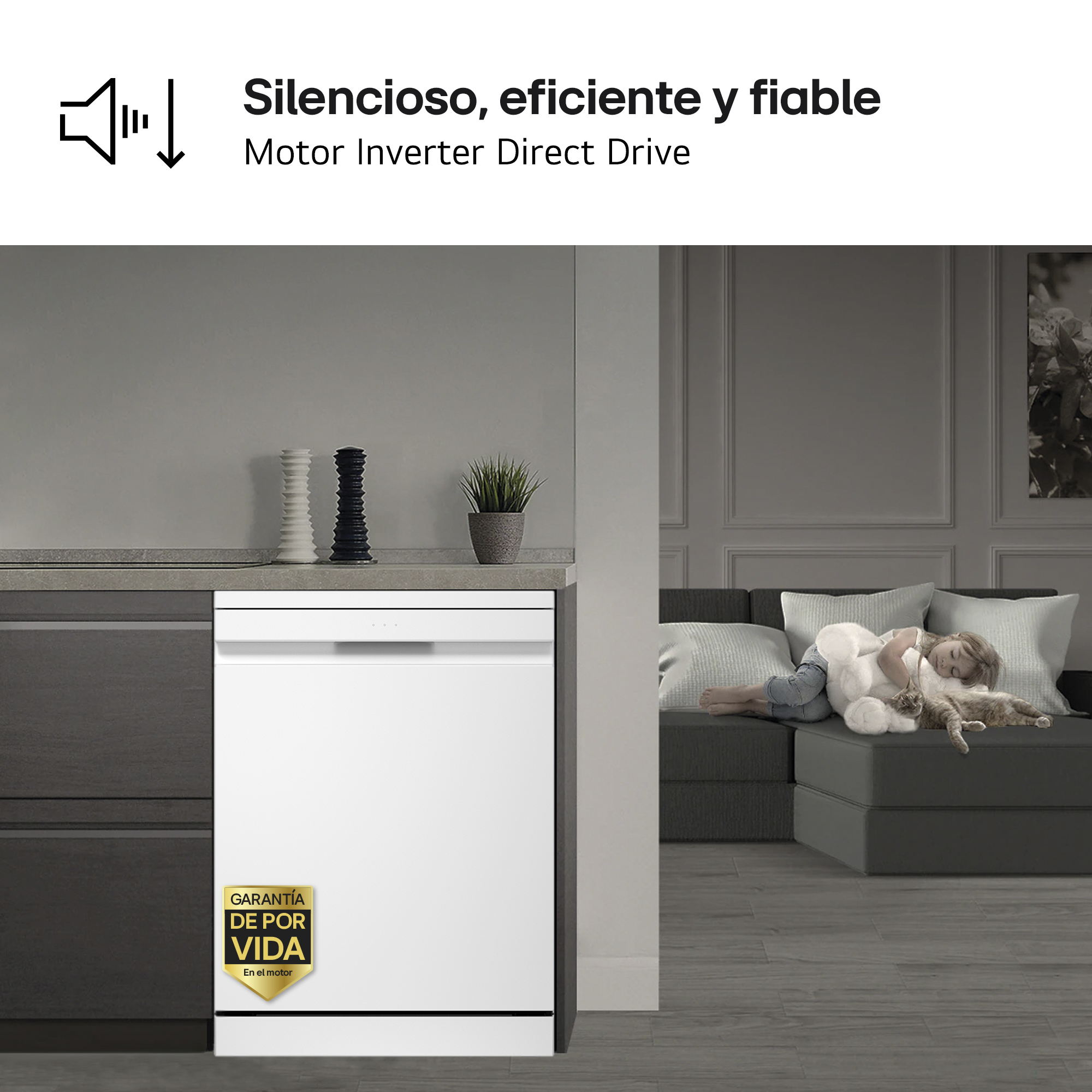 Lavavajillas LG QuadWashTM Steam Blanco marfil A con lavado a vapor y tercera bandeja DF375HWS